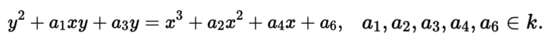 在阅读Wikipedia的过程中发现一个名字「Weierstrass equation」,原来它才是这些曲线的鼻祖,在一个域k上的任何一个平面曲线,都可以表示成Weierstrass equation。