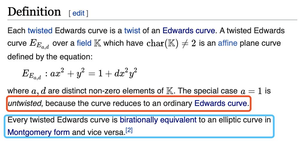 「Twisted Edward Curve」定义如下: