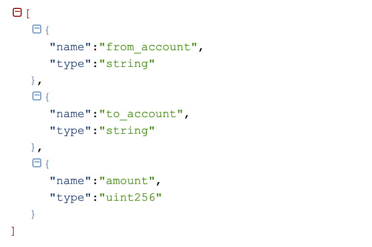 可以看到ABI是一个JSON的对象数组,包含接口与Event的信息。
