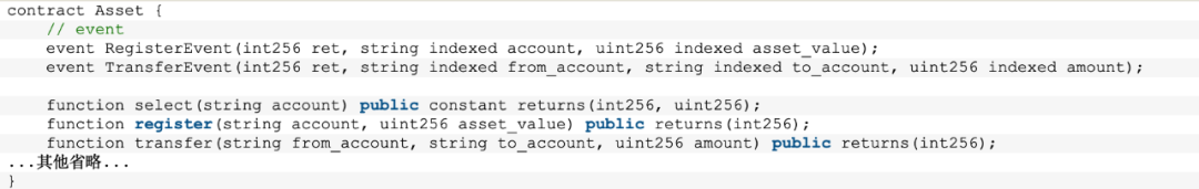 Asset合约的transfer接口以及其ABI如下: