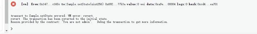 如果我们换一个账户来执行,那么调用会失败,因为onlyAdmin修饰符会阻止用户调用。