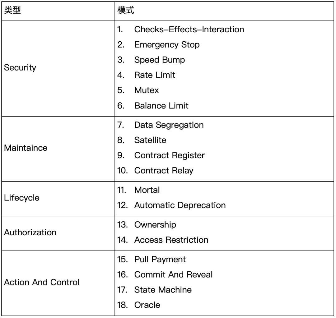 2019年,IEEE收录了维也纳大学一篇题为《Design Patterns For Smart Contracts In the Ethereum Ecosystem》的论文。这篇论文分析了那些火热的Solidity开源项目,结合以往的研究成果,整理出了18种设计模式。