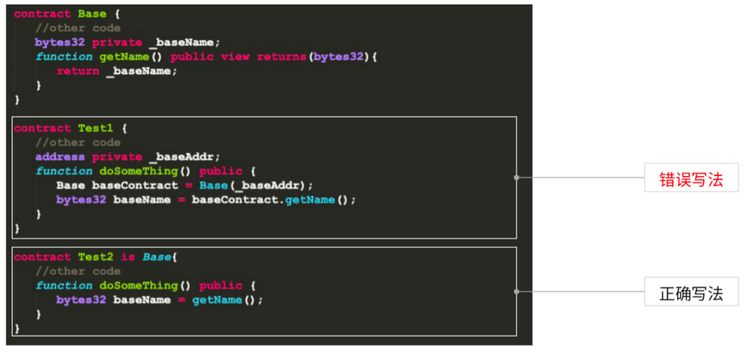 技巧8:通过智能合约提供的高级特性,比如继承,减少跨合约调用