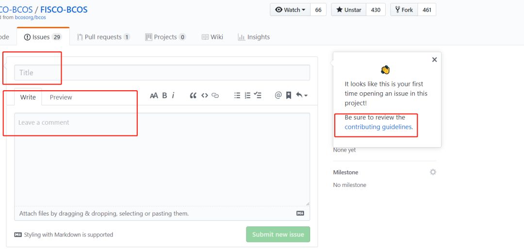 打开FISCO BCOS平台的issues界面,此处可参考链接: