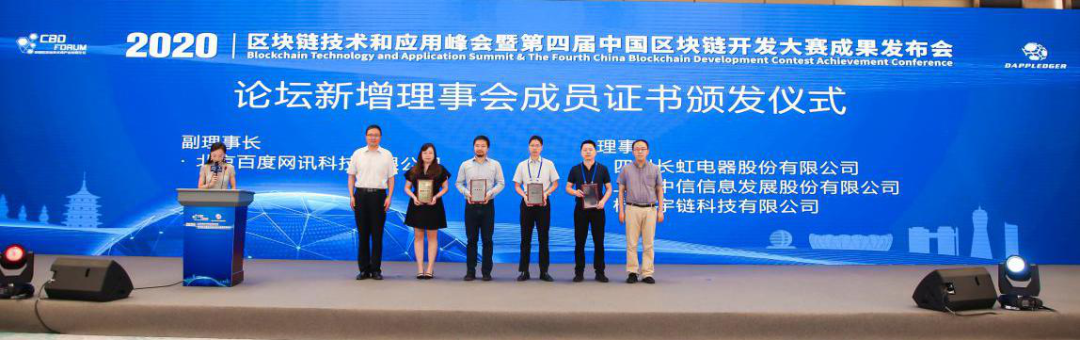 工信部信发司调研员李琰、中国电子技术标准化研究院赵波院长为论坛新增副理事长单位和理事单位颁发了证书。赵波院长为通过区块链系统性能测试和功能测试的企业颁发了测试证书。