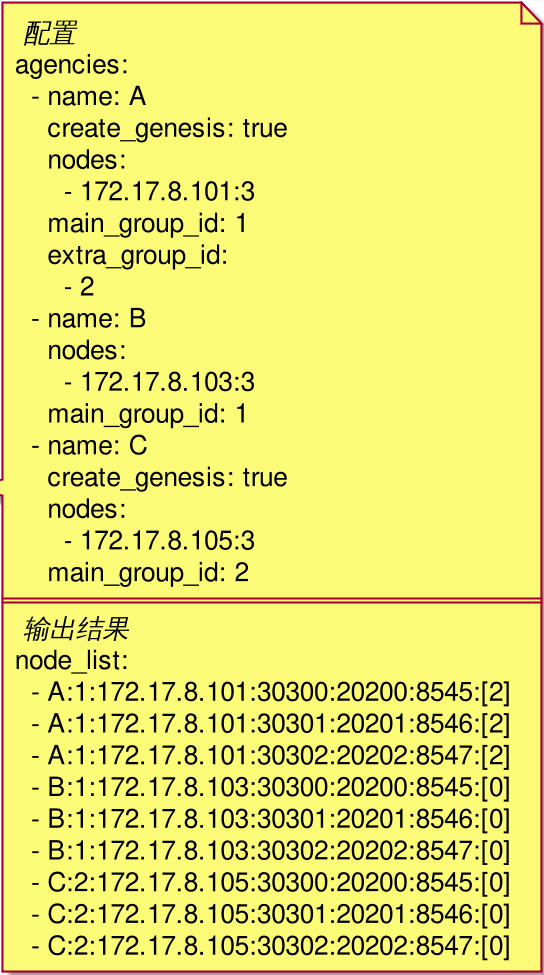 nodes: (必填)机构各节点连接信息。格式 <ip>:<节点数>。如果只填写 IP,则默认为1个节点。同 IP 多节点会自动递增对应端口。