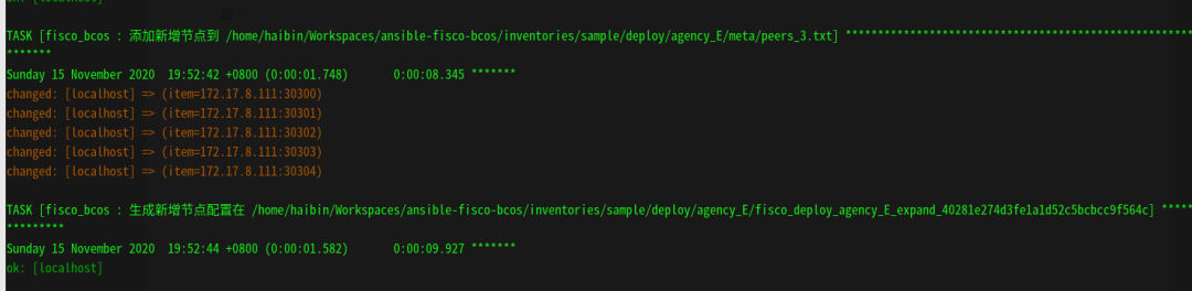 再次执行 ansible-playbook fisco_bcos.yml 命令。你可以看到以下输出内容: