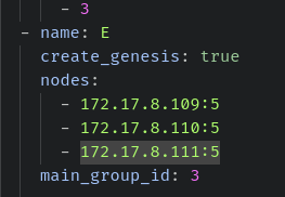 一套集群初始化部署后,可能会因为业务的增长,需要扩展节点。假设我们要给机构 E 增加1台机器,部署5个节点。那么先修改 init.yml 文件,nodes 添加一行记录 172.17.8.111:5,如下图: