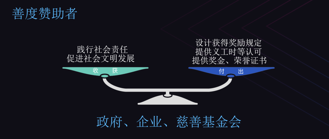 对应善度中角色,WeHelp的运行由四大角色各司其职。其中,WeHelp团队承担着善度发起者的角色。