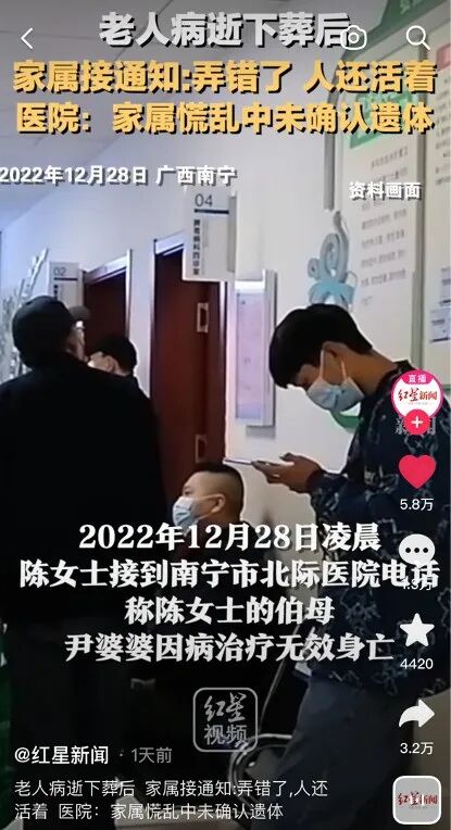 而且,当医院通知,老人还在世时,子女们表现出的,更多的是对医院的愤怒,而不是老人“死而复生”的喜悦。