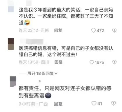 这个事情,医院当然有责任,但家属把自己的亲妈都弄错,还带回去办葬礼,实在太不应该了。