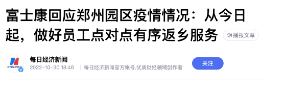 10月30日晚,郑州富士康终于做出了回应。