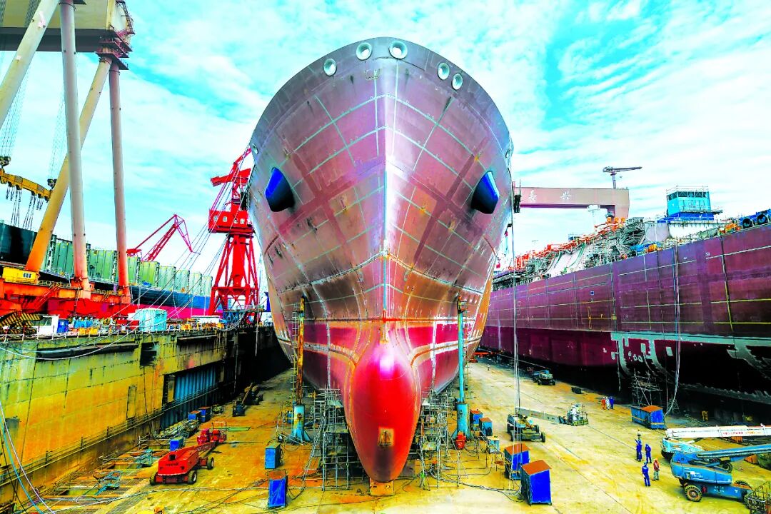 如今,在船海科技的国际赛道上,中国船舶工业已从“跟跑者”向“并行者”甚至“领跑者”转变:船舶工业三大核心指标连续多年保持世界领先;航母、LNG船、大型邮轮、钻井平台、极地科考船、载人深潜器等高端船海装备不断破局。