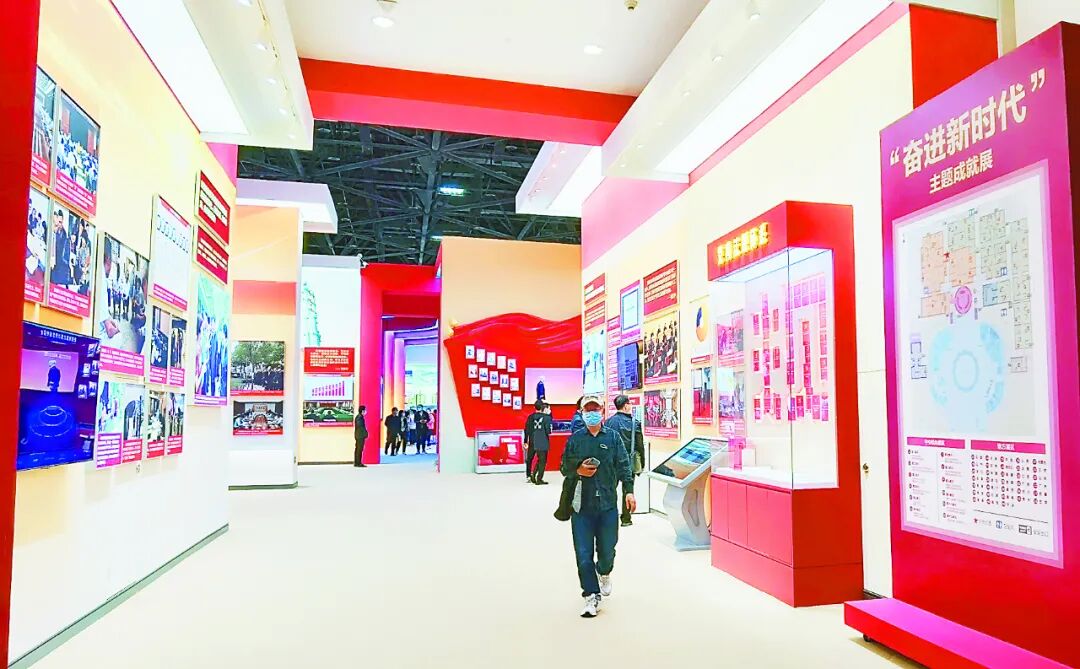 “奋进新时代”主题成就展于9月27日在北京展览馆开幕。图为观众在第十二单元“全面从严治党 保持党的生机活力”展区参观。本报记者 聂新鑫 摄