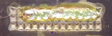 电池注液完成后需要马上激光焊接密封,但是注液残留在焊接区域,会造成焊接不良的问题。同样使用相同的纳秒激光器,预先对注液口周围进行激光清洗,然后马上进行复合激光焊接,能够得到鳞状的焊缝和平整光滑的外观。另外,铝的导热率很高,如果熔融铝内部有微小气孔的话,气体溢出后会很快凝固,不会形成这样的类似镜面外观。
