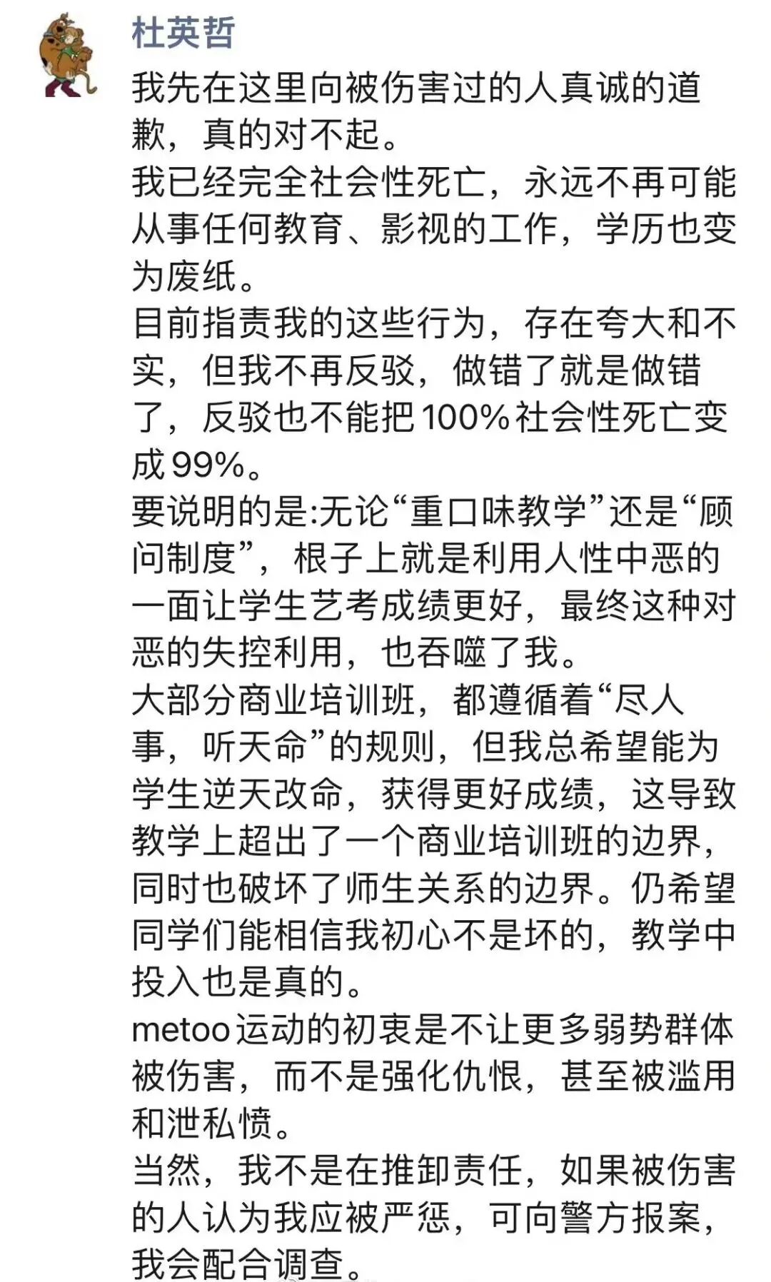 “这个事情是我做的,我真诚的向所有人道歉.....
