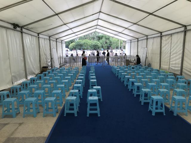 腾讯《棱镜》在现场看到,与动辄上万人排队登记的现场相比,西派城登记现场冷冷清清,购房者不用排队即可进入登记大厅,大厅里随处可见空闲的位置,开发商准备的排队护栏压根派不上用场。