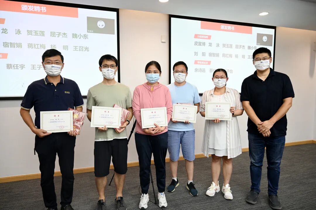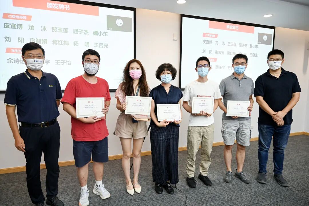 杨明、王冲代表学院共同为出任本科22级新生班主任的9位专业教师及3位学生班主任代表颁发班主任聘书,并对毕业本科班离任教师班主任代表陈松良、学生班主任代表杜朋、王雪亮、石丰浩赠予了送别礼物,感谢他们在22届本科毕业班指导过程的辛勤付出。