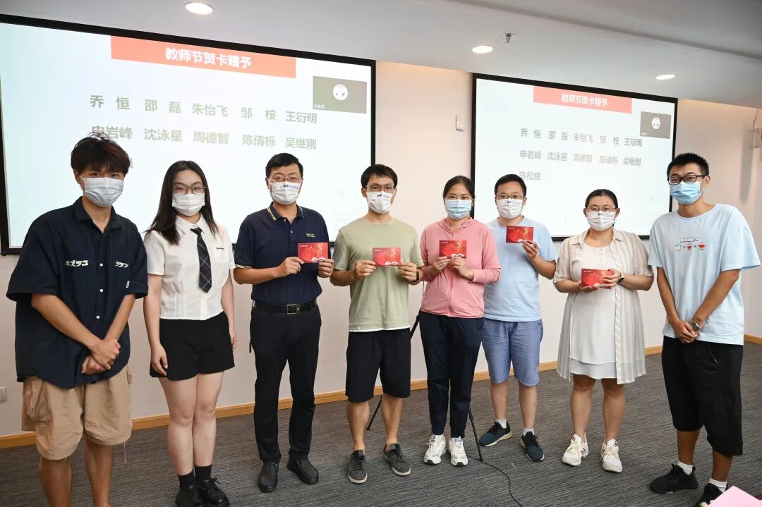 与会班级学生代表代表新生班级为老师们献上手写的教师节贺卡,为老师们送上一份温馨的祝福。