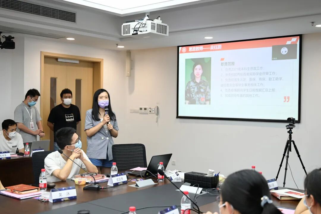 全体思政教师分别从班主任工作职责、学生党建、团学、事务、就业等方面介绍了各自学生工作的条线分工情况。