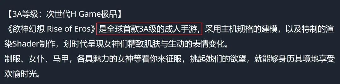 “次世代H Game,3A级的色色手游”,一眼看过去全是噱头。