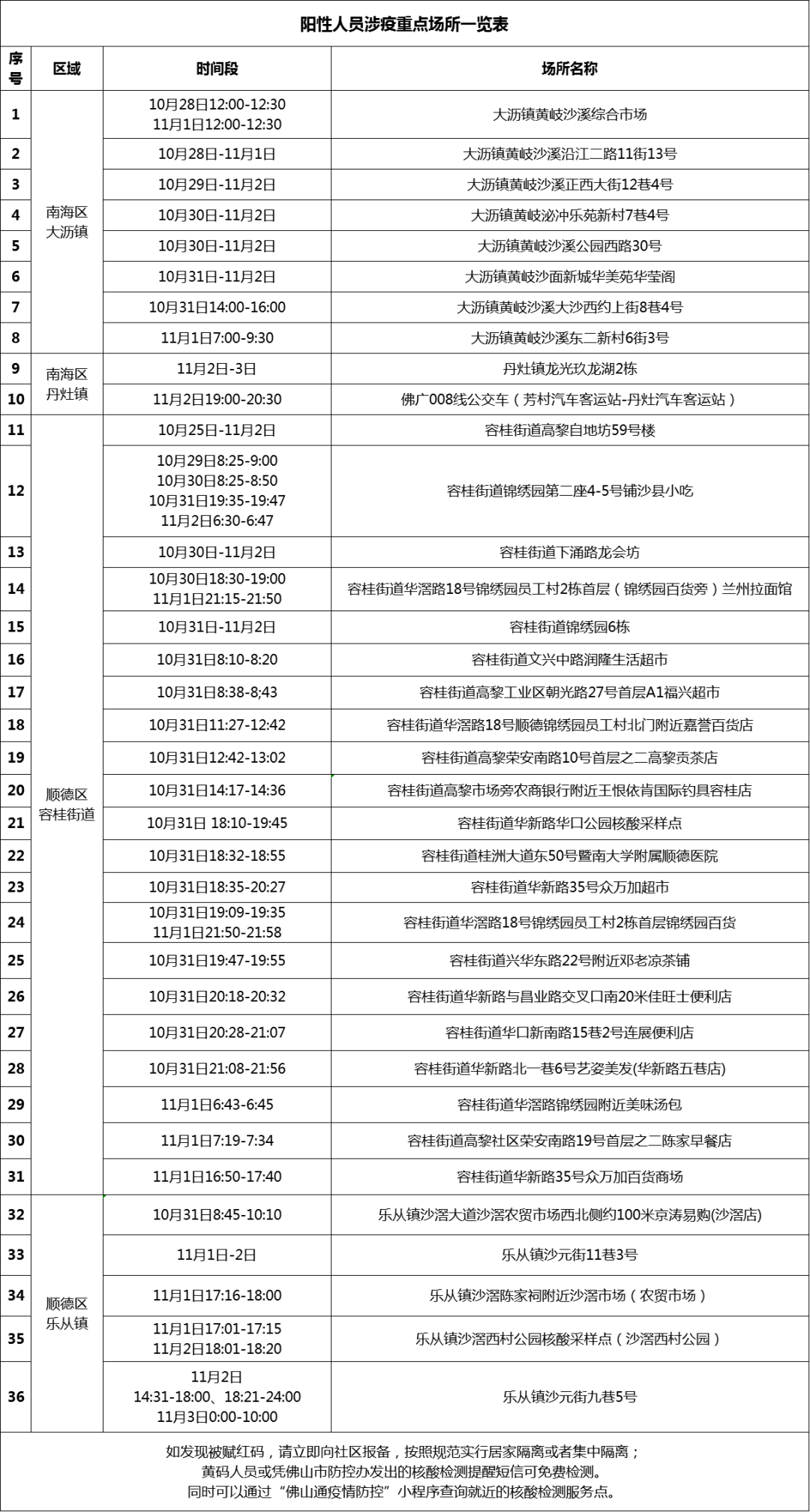 佛山阳性人员涉疫重点场所一览表