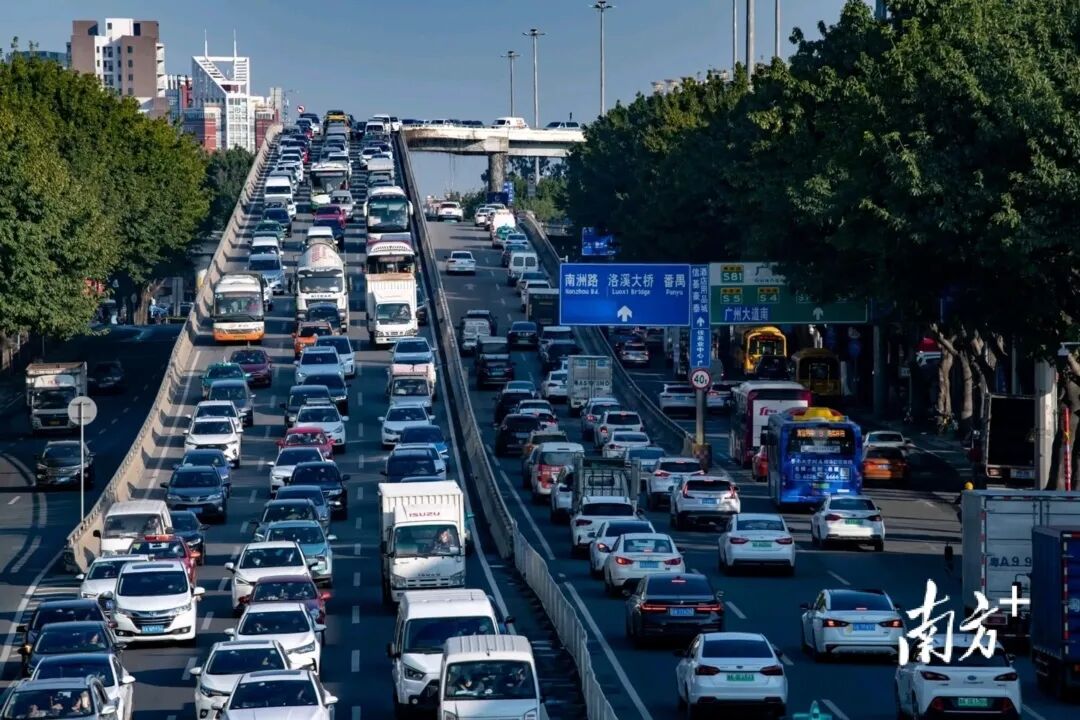 出程高峰易堵路段:广州环城高速(广州市天河区段)、莞番高速(广州市番禺区段)、沈海高速(深圳市龙华区段)、南光高速(深圳市光明区段)、广佛江珠高速(佛山市南海区段)、广佛肇高速(佛山市三水区段)、长深高速(河源市源城区段)、济广高速(河源市紫金县段)、深汕高速(惠州市惠东县段)、济广高速(惠州市博罗县段)、深岑高速(江门市江海区段)、沈海高速(江门市鹤山市段)、沈海高速(茂名市茂南区段)、二广高速(肇庆市四会市段)、京广梧高速(肇庆市高要区段)、许广高速(清远市清城区段)、京港澳高速(清远市佛冈县段)、深岑高速(云浮市新兴县段)、广佛肇高速(沙北立交段)、莞佛高速(虎门大桥段)。