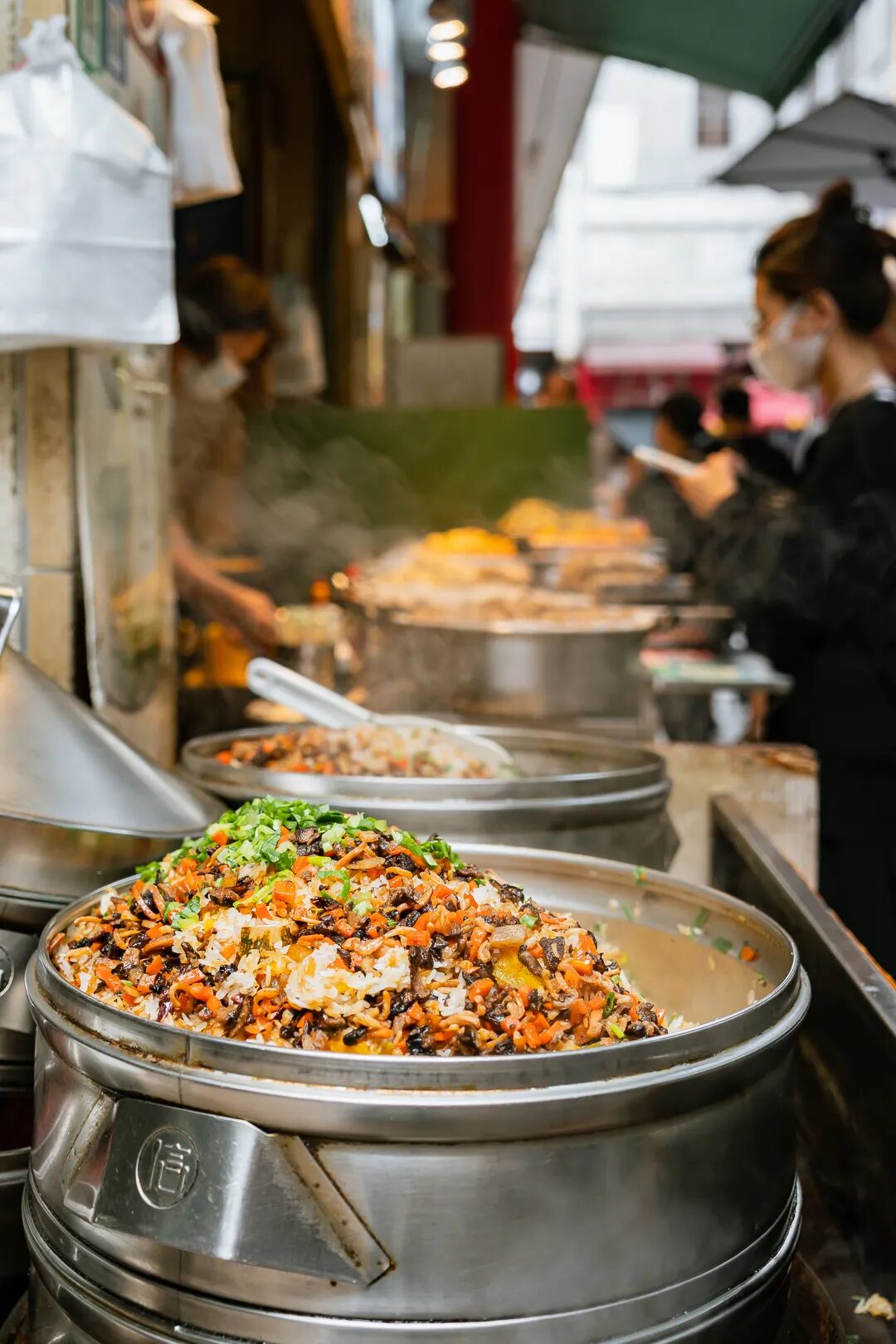大叔正在把粿条与面条放在一起翻炒。摄影/赵大明