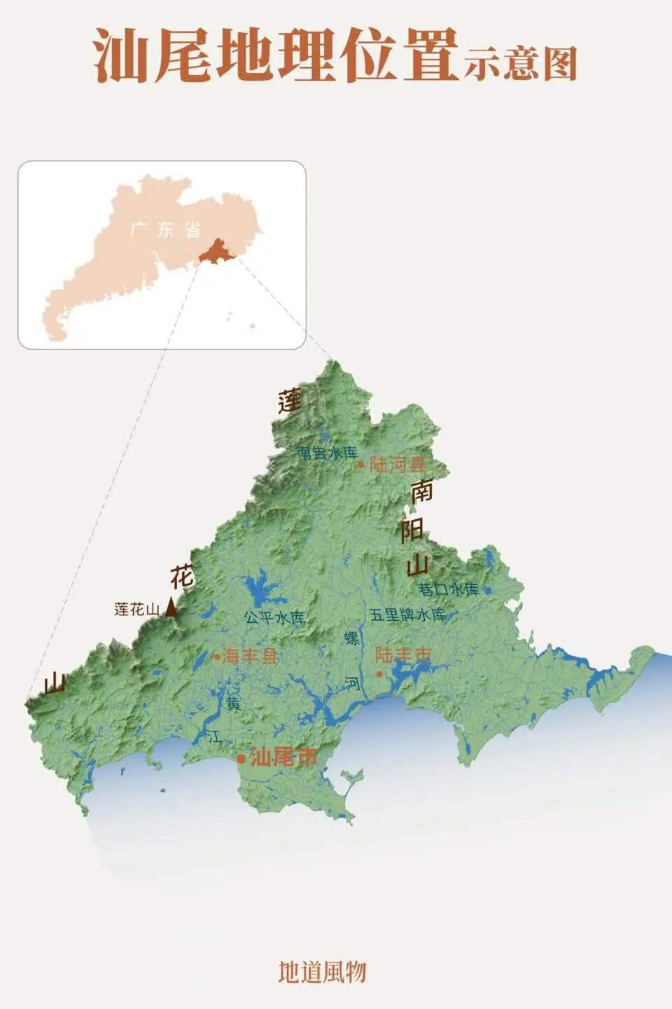 而在东江、韩江两大水系中间,有两条并不那么长,但同样足以为聚落的形成提供稳定支持的沿海河流——黄江与螺河。黄江流经最大的市镇,叫海丰;螺河流经最大的市镇,叫陆丰。它们合起来,再加上北部的陆河县,传统上被称为“海陆丰”,尽管面积并不算很大,但在丘陵遍布、寸土寸金的广东,却也成了一个相对独立的地理单元。