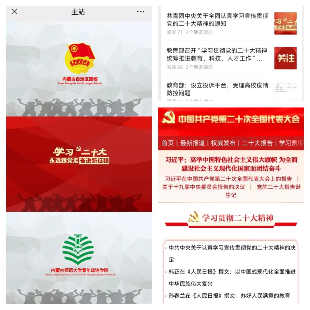 为深入学习宣传贯彻中国共产党第二十次全国代表大会精神,深刻领悟习近平总书记所作的报告,内蒙古自治区团校 内蒙古师范大学青年政治学院高度重视、精心策划,多措并举,在师生齐心抗疫,做好各项疫情防控工作的背景下,不断拓展学习的广度和深度,迅速掀起党的二十大精神学习热潮。