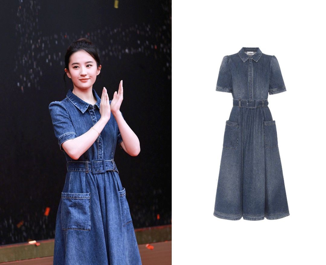 放弃瞎穿之后更是到达了颜值巅峰~一身牛仔连身裙外加俏皮丸子头,少女感满满