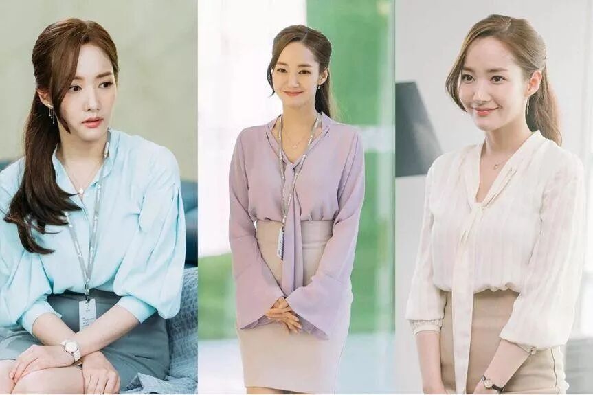 我们的金秘书可以说是这个搭配的代言人本人了!2018年大火了一部韩国轻喜剧《金秘书为何那样》,朴敏英饰演的金秘书贡献了超多仙气穿搭。金秘书最喜欢的搭配法则就是“长袖雪纺衬衣+包臀半身裙的搭配,看完了一整部剧只想知道,金秘书是不是有一百件不重样的雪纺衬衣?