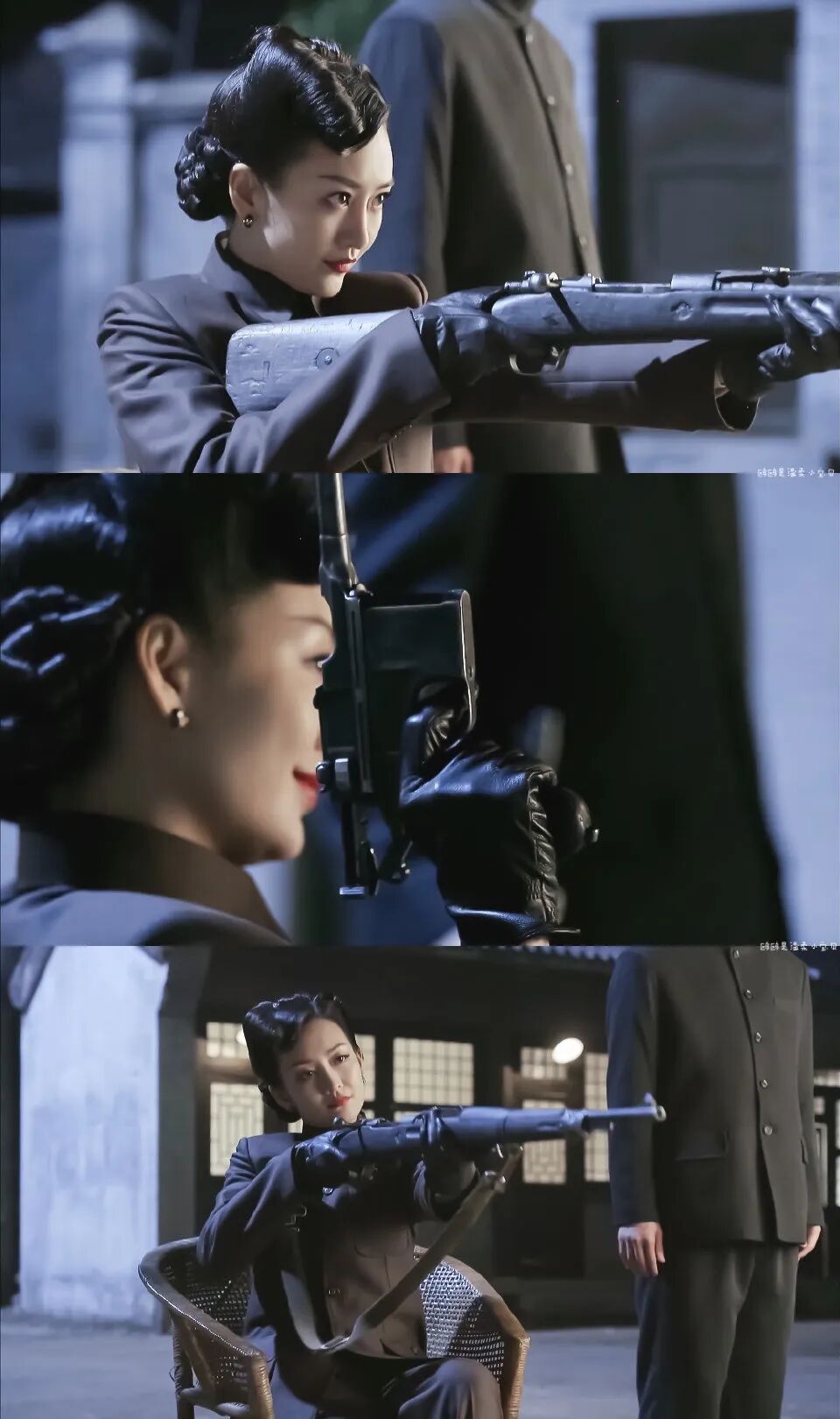 她是《伪装者》中的带刺玫瑰汪曼春,长发盘起,军袍皮靴美艳摄人,在谈笑间置人于死地。