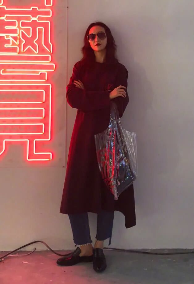 黑色长款风衣、紧身牛仔裤、漆皮乐福鞋、PVC手提包,是墨镜一戴谁都不爱的“冷酷杀手”了。(鲨少男少女心的那种)![]()