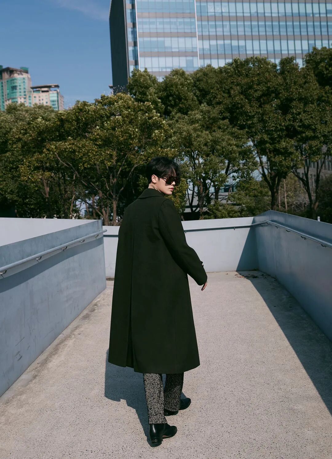 军绿色大衣+深色豹纹休闲裤,搭配锃亮皮鞋,这难道不是韩剧里走出来的帅气欧巴?