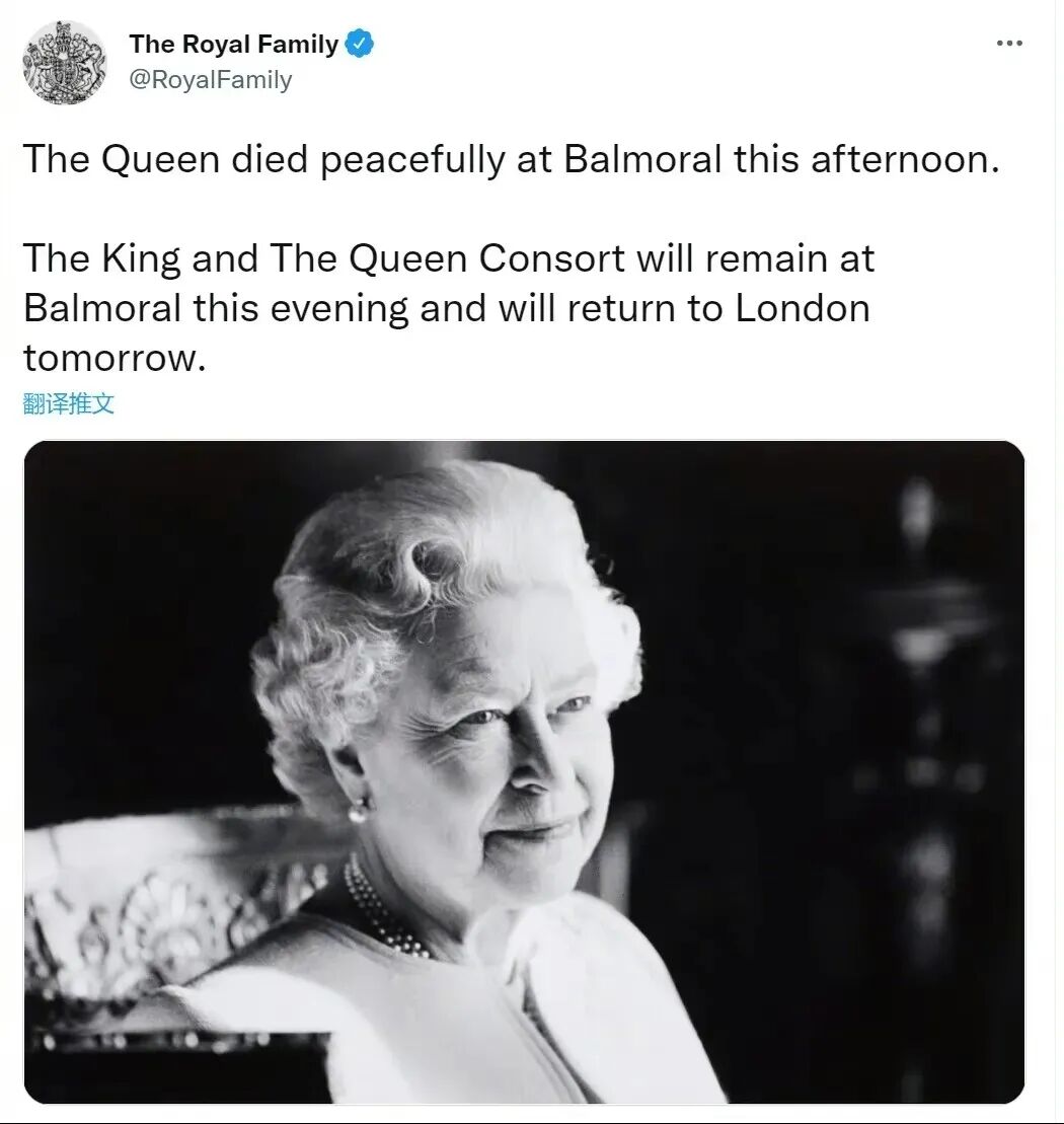 于当地时间9月8日下午,在位于苏格兰的王室住所巴尔莫勒尔城堡去世,享年96岁。