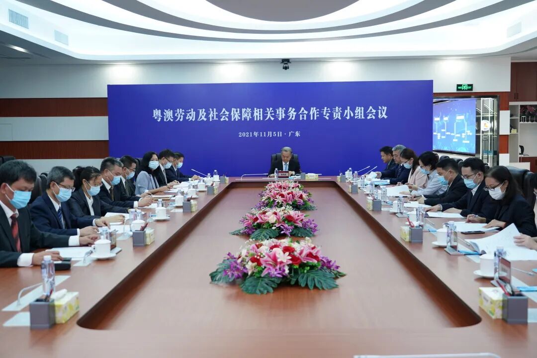 11月5日,2021年粤澳劳动及社会保障相关事务合作专责小组会议以视频形式举行。广东省人力资源和社会保障厅、澳门劳工事务局、澳门社保基金、澳门经济及科技发展局在会上共商合作前景,携手落实好国家战略部署,推动粤澳合作取得丰硕成果,共同提升两地民生福祉。