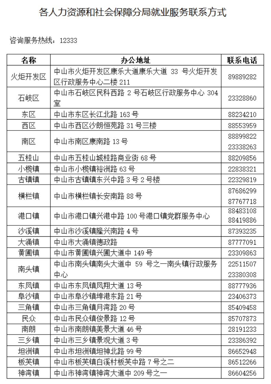 具体安排以各镇街通知为准,如有疑惑,可咨询对应镇街人社分局,联系方式如下: