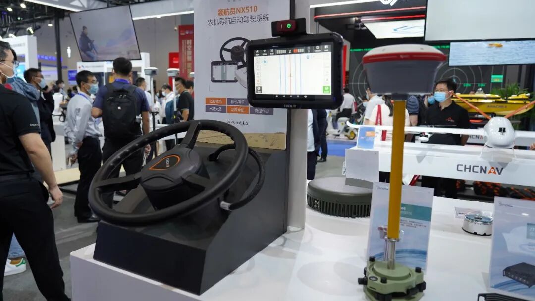 华测导航在此次博览会上重点展示了北斗高精度芯片、模块、板卡、黑盒子等卫星导航核心应用器件及涉及激光雷达、无人机、无人船、监测设备的一系列北斗应用解决方案。其中,PIXLOOP-Meiner开源自动驾驶机器人和领航员NX510北斗农机自动驾驶系统极为吸引眼球,不时被围观、询问的人群所簇拥。