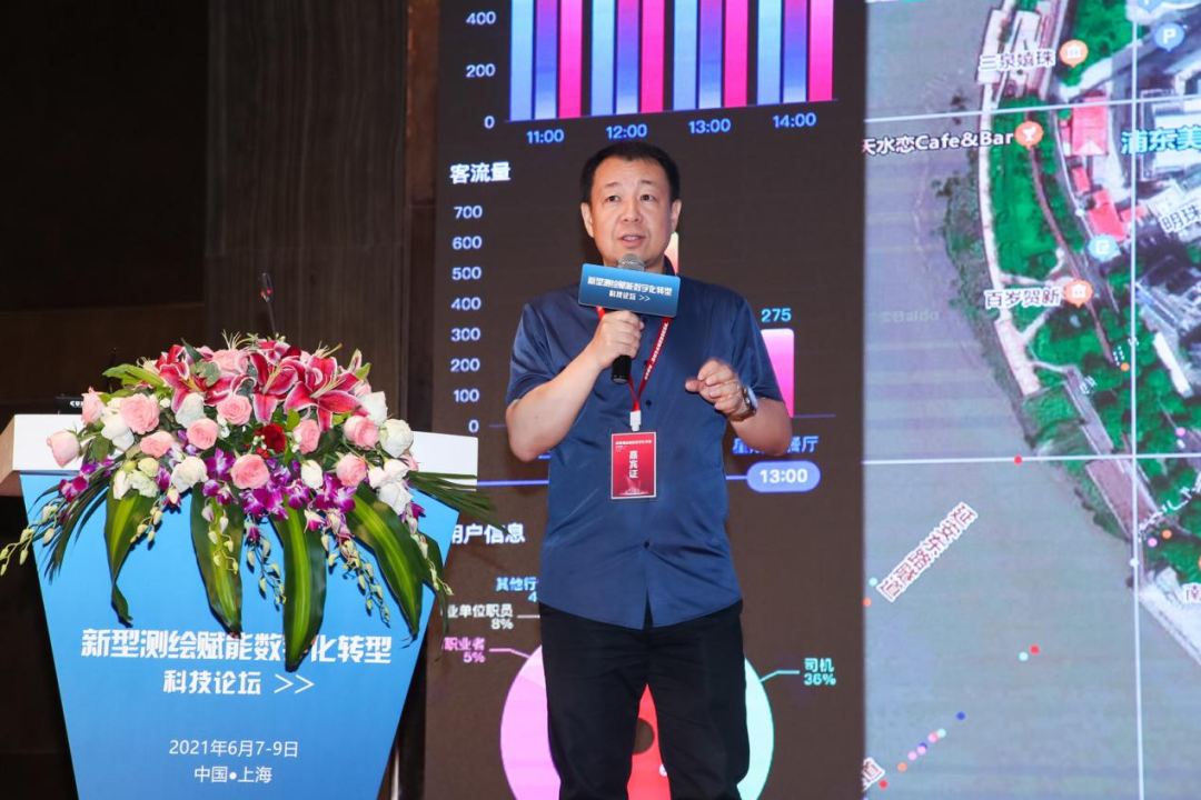 围绕《时空AI与新型测绘城市数字孪生底座》的报告题目,陶闯董事长进行了一番有关“数据的时空化而非时空的数据化”的精彩说明。结合相关系统平台的演示,他向参会者们呈现了多源数据融合下的鲜活城市运行动态,并描绘了其对未来城市规划的价值。他表示,未来的时空数据成果不仅要更加精细化、智能化,而且还要更加融合化。“数据的时空化”就是将时间维度融入空间,是“可以用综合数据来判断某个地方再开一个火锅店到底将引发怎样的城市变化。”