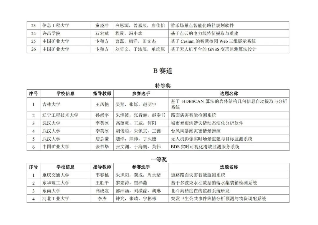 经过前后逾2个月的比拼,7月30日,由华测导航独家支持和赞助的“华测导航杯”第二届全国大学生测绘创新开发大赛获奖名单正式公布。A赛道决出特等奖10组,一等奖20组,二等奖26组;B赛道决出特等奖6组,一等奖11组,二等奖19组;总计15位老师获评优秀指导教师。(获奖名单详见后文及文末“阅读原文”)