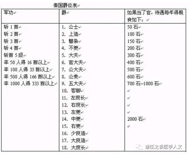 然而,商鞅把秦国打造成为一个战争机器,譬如在军事上设立多层军爵,而军功取决于战争斩杀人数的多少,而且还可以分田地。随着秦国统一天下,战争结束,土地分完,这台机器失去了动力,秦国两世就亡国,商鞅自己被分尸,这样的后果不也应该思考吗?