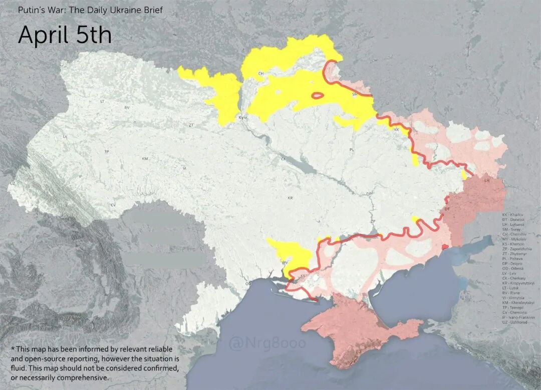 这是截止4月5日,俄乌双方战局最新动态图。