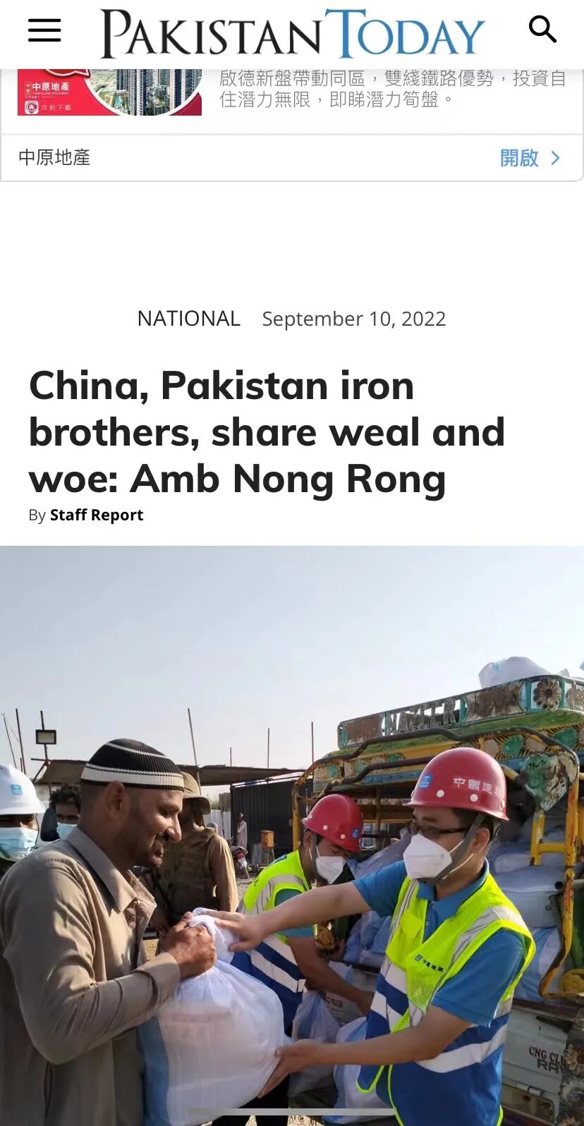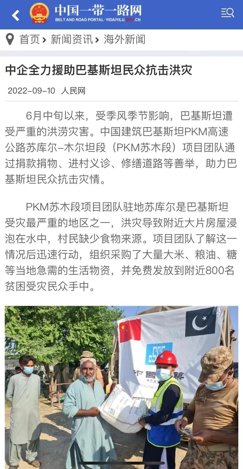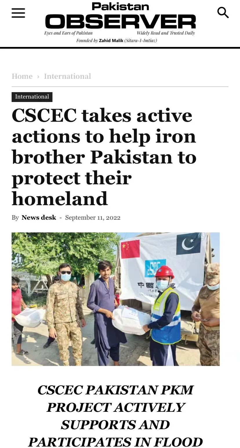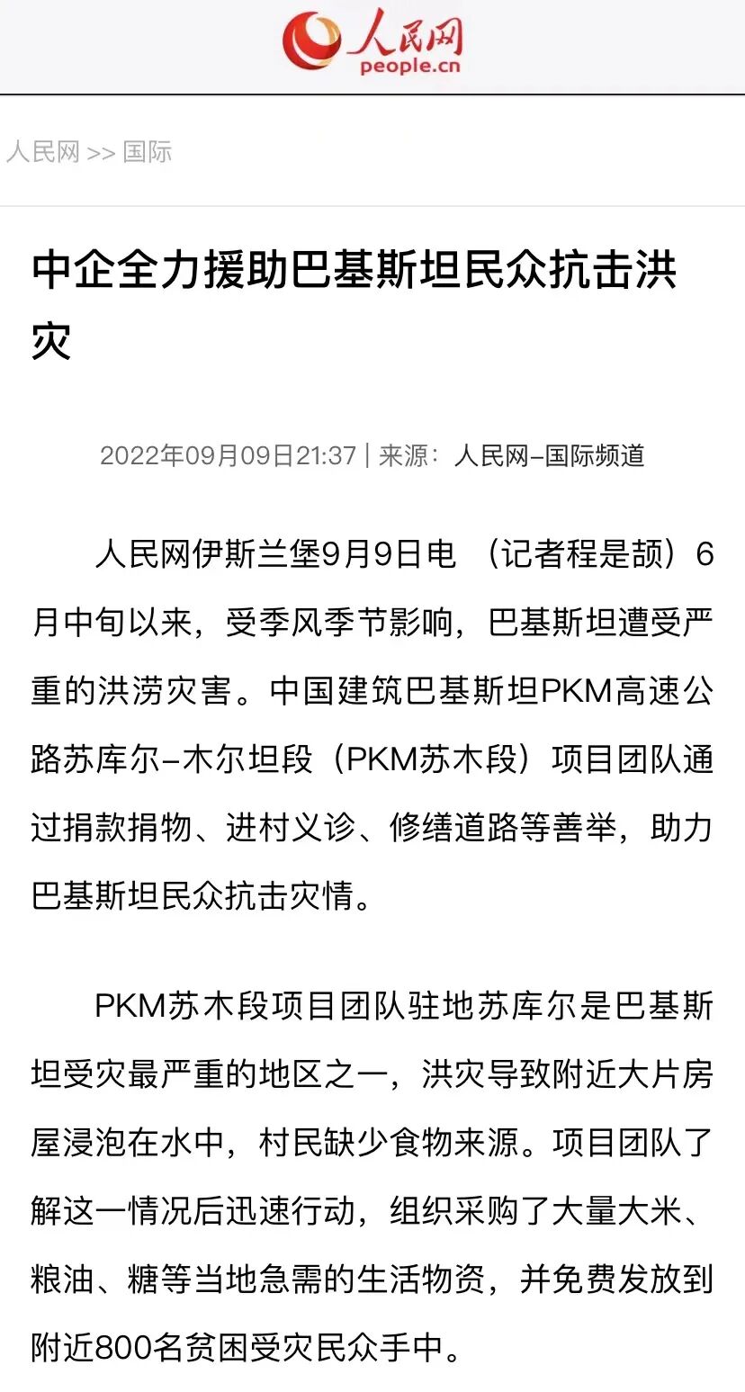 助力巴基斯坦人民抗击灾情、守护家园