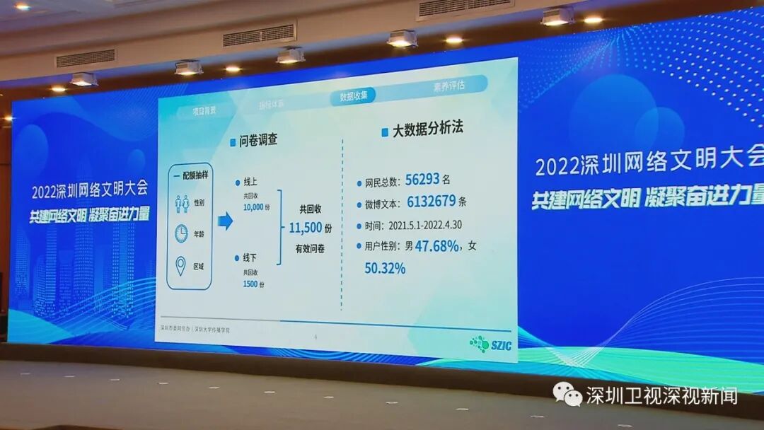 据介绍,《报告》通过对11500名14周岁以上深圳市网民的线上与线下问卷调查,以及对5万余名深圳微博用户的大数据内容分析;并邀请政府、行业、媒体、学者、网民等40名代表,对各项指标的构成和权重进行综合评估,并邀请来自各个系统的专家进行梳理,搭建了一个科学、全面的网络文明素养体系和数据的模型。