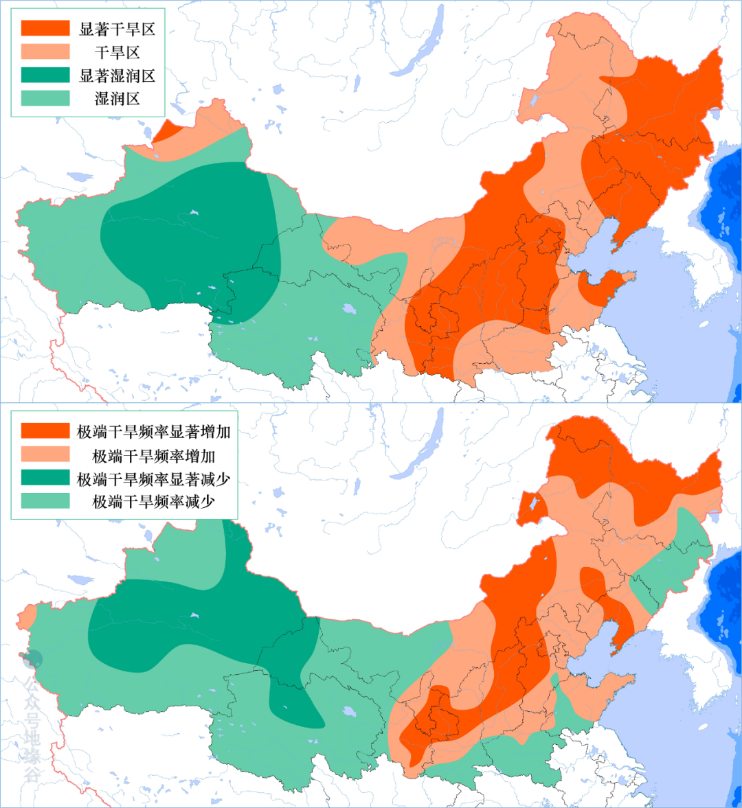 西北地区的暖湿化趋势固然喜人,但是我们不要忘记,这次西北地区的暖湿化趋势的最大诱因是全球变暖,而全球变暖这个大趋势在中国各地的响应,也不完全是可喜的。面对暖湿化、全球变暖,受影响最严重、响应最快的是生态最为脆弱的青藏高原。虽然暖湿化使得植被覆盖面积快速扩张;但是这也同时让青藏高原的冰川退缩、冻土消融,极端天气增加,对农业、牧业生产会带来不利影响。中科院青藏高原研究所等单位的研究数据显示,过去30年,青藏高原多年冻土面积由150万平方公里缩减为126万平方公里,减少了16%。半个世纪以来,三江源地区最大冻土深度平均每十年减少12厘米。三江源地区的冰川也在消融,未来百年之内可能消失60%。冰川与冻土也许不利于工程建设、开发利用,但是它们是调节气候的重要因素。冰川消融短期内会造成江河流水域增加,但长此以往,将对东亚江河水资源平衡产生影响。可能改变当地水资源的季节性分配,并导致区域水循环恶化,引发水安全问题。而冻土的消融,初看是增加了草原的面积,但是事实上冻土中的水被释放出来之后,草甸、湿地的面积不断增加,淹没草场,破坏工程设施、基础设施,导致土地涵养水源的能力削弱。中国人口最为密集的华北地区,也将会因为西北的暖湿化面临干热化的趋势。根据IPCC(联合国政府间气候变化专门委员会)与中国科学院973项目(北方干旱化与人类适应项目)的研究,西北暖湿化是在全球性的区域干旱化的大背景下形成的,其形成伴随着北方地区的干旱化、炎热化。由于华北地区降水量小于蒸发量,因此华北地区农业生产一向需要大量的灌溉。既然华北地区干旱化加重,灌溉所需的水量就会大大增加,而灌溉时蒸发到空气当中的水蒸气又使得地面湿度增加;湿度增加则会导致体感温度增加、温室效应增强;而人们因为炎热开启的空调也会使得碳排放进一步增加,温室效应再次加强,形成正反馈。因而华北地区的夏季气候将会呈现出一种奇异的极度湿热却又降水稀少的现象。这种湿热与干旱的结合,将会使得华北地区将来在夏季不宜于人们居住。最近几年华北地区夏季动辄40℃的高温热浪,也是这个现象的预演。加之华北平原为我国城市和人口密集区,热岛效应更加剧了城市炎热。当然,我们所探讨的不论是西北地区、青藏高原暖湿化,还是华北地区干热化,都是已经出现但尚未完全形成的现象。我们相信,凭借着中国人民的努力奋斗,以及我们一直以来对生态保护的重视,将来我们面对的不管是什么样的气候变化,都有能力从容应对,并将之化为机遇。参考资料(向下滑动):《中国西北气候由暖干向暖湿转型的特征和趋势探讨》施雅风等;《基于CMIP5的中国西北地区暖湿化演变研究》杜懿;《暖湿化:西北崛起的历史机遇》;《青藏高原暖湿化对柴达木水资源与环境的影响》党学亚等;《气候趋于“暖湿化”对克拉玛依市生态环境的影响》刘娴;《1961~2018年西北地区降水的变化特征》王澄海;《中国西北地区气候转型的新认识》姚旭阳;《西北地区水环境与经济发展耦合关系的实证分析》王永良;《全球变化与区域干旱化》符淙斌;《应对青藏高原暖湿化》张京品、刘洪明;《IPCC第五次评估报告》;《China could face deadly heat waves due to climate change》 David L. Chandler, MIT