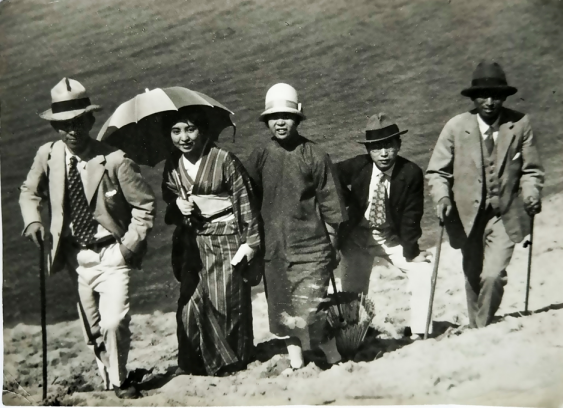 1927年任朝鲜京城帝国大学法文学部中国语讲师时的魏建功先生(右二),偕夫人王碧书(右三)与日本青年教师田野武利夫妇游汉江时合影