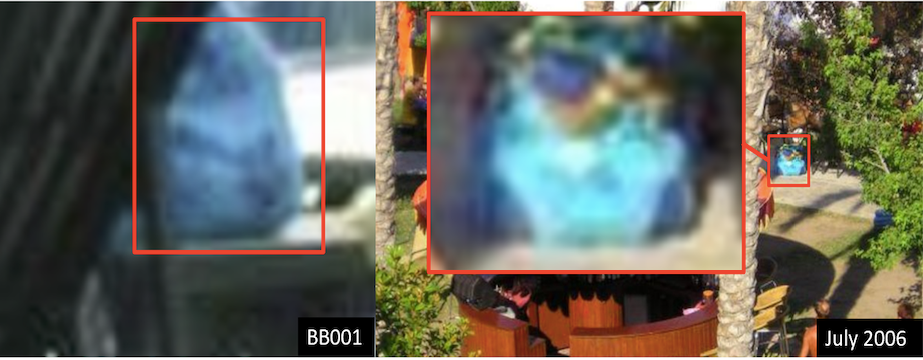 在确定了游泳池的地理位置后,其他的细节使我们能够通过图像编辑和比较来确定图片BB001的大概拍摄时间。