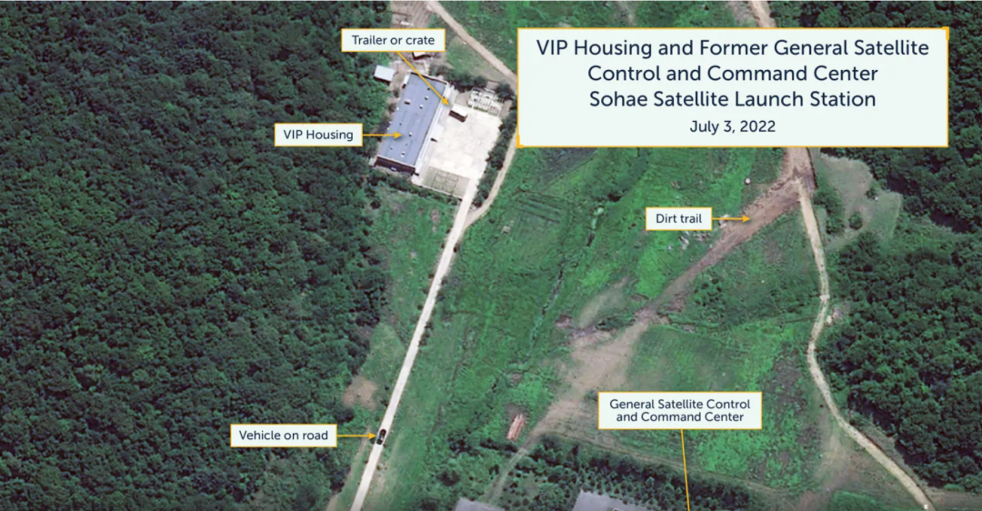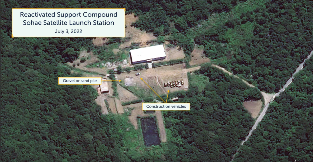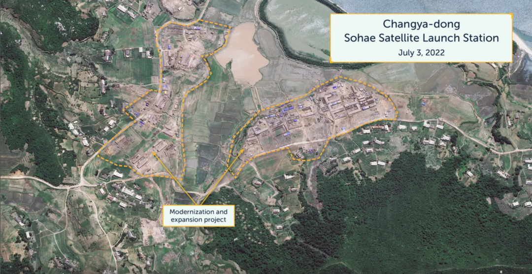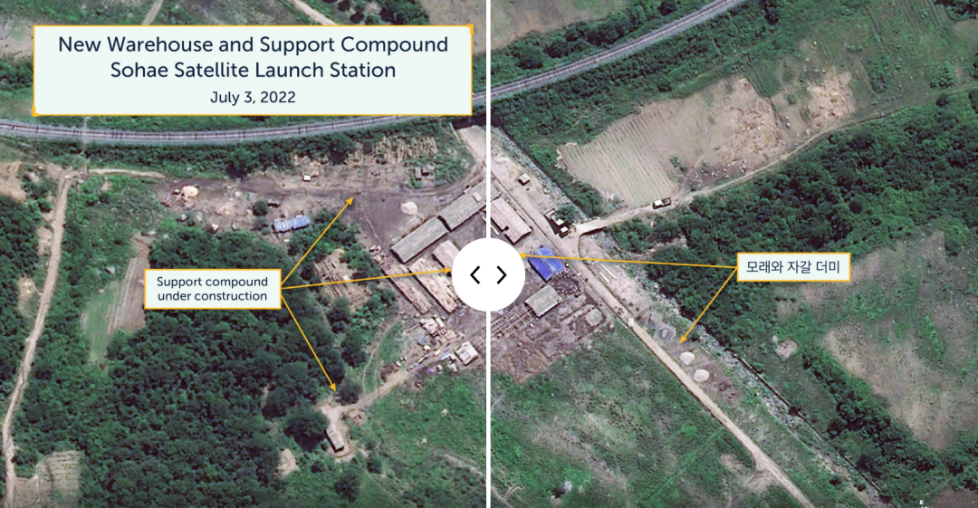 在2022年7月3日确定的活动中,卫星图像包括建造一个大型铁路仓库,在发射站东侧的三个地点进行挖掘,在中心建造三个工人住房和支持大院,以及在两个现有支持大院进行新活动。