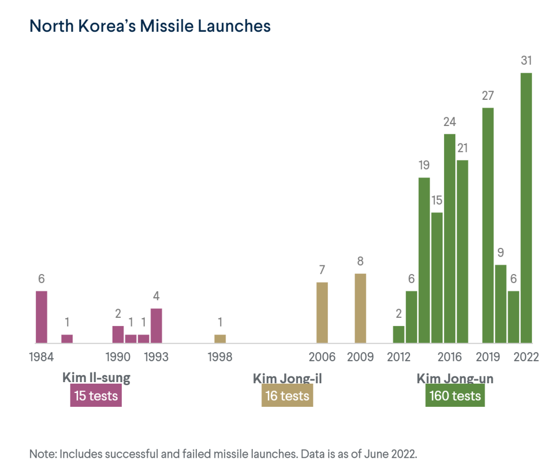 到2022年年中,朝鲜自今年年初以来已经试射了三十多枚导弹,打破了其在任何一年的发射记录。CFR的斯科特·A·斯奈德(Scott A. Snyder)表示,朝鲜加大了试验力度,表明它“没有期望与美国重新进行外交接触”。